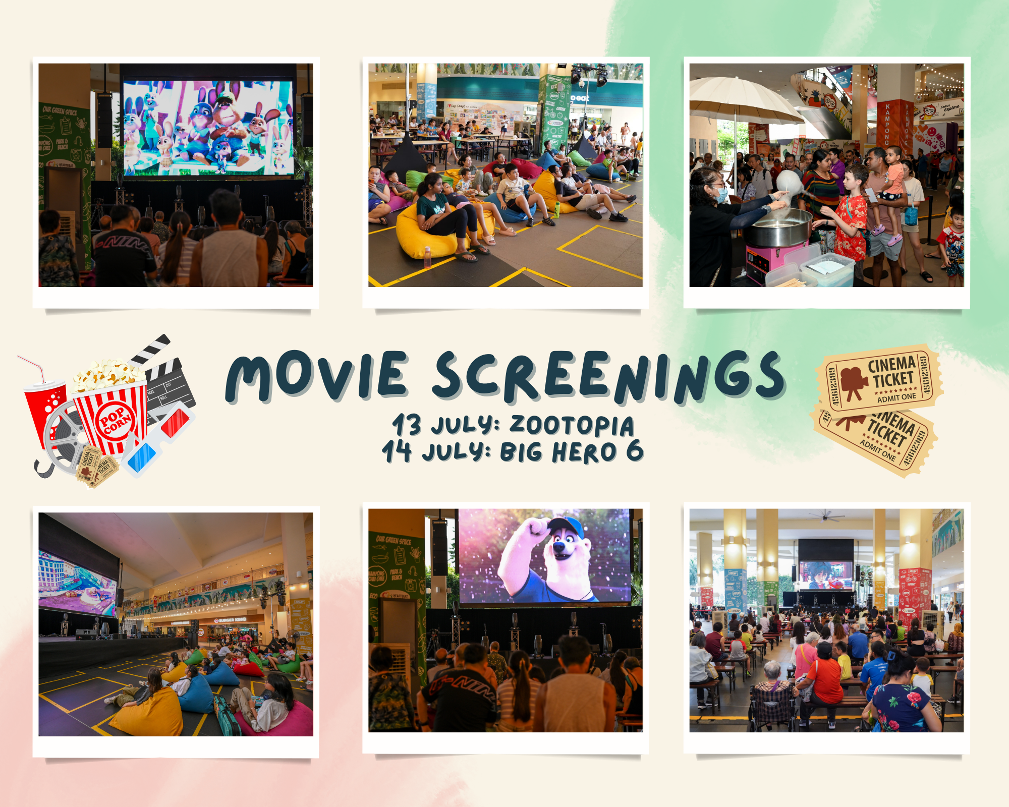 Delectable food booths providing free snacks such as popcorn, ice cream, candy floss and hotdog buns were available for guests to enjoy with the movies.
