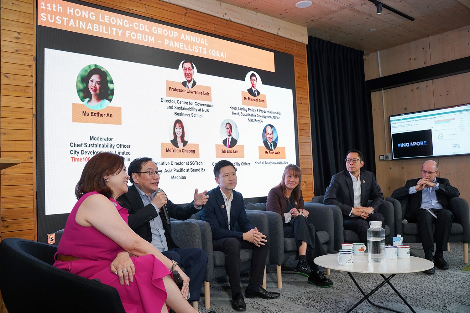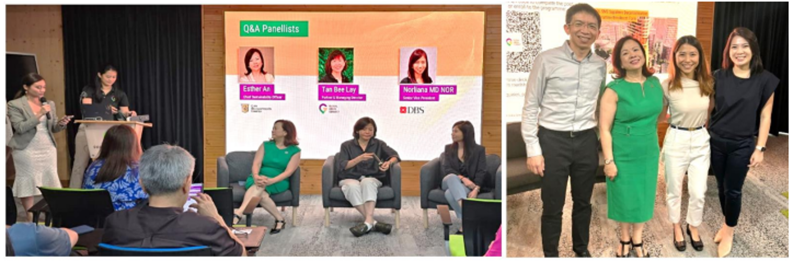 - The event featured opening remarks by CDL’s CSO Ms Esther An, a panel with Mr David Craig and Ms Esther An, moderated by Mr Yuelin Yang, Deputy Group Managing Director, IMC Industrial Group, and closed with remarks by Professor Lawrence Loh, Director of Centre for Governance and Sustainability at NUS Business School.