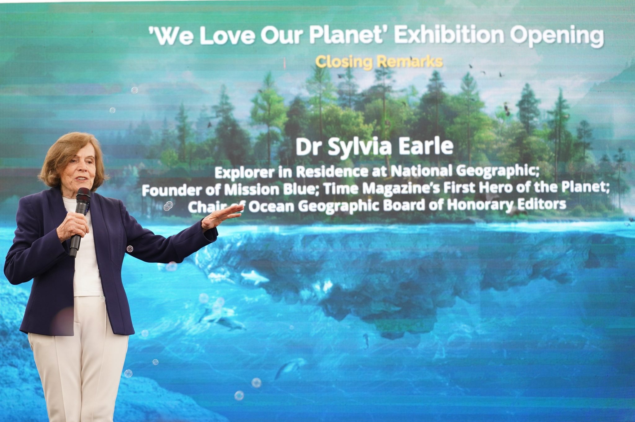 - Personal reflections and aspirations by Dr Goodall and Dr Earle, who shared their challenges and hopes for the planet