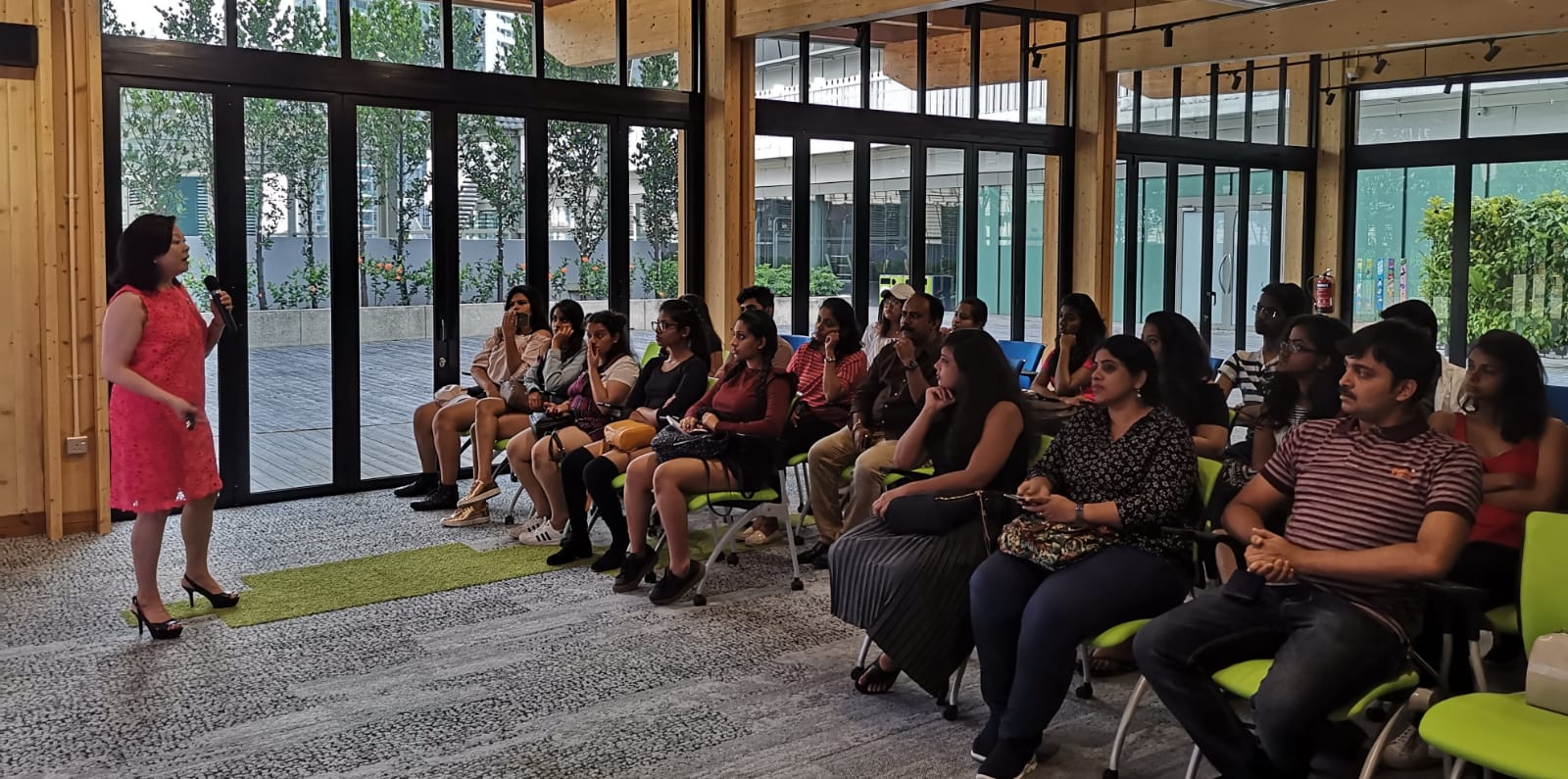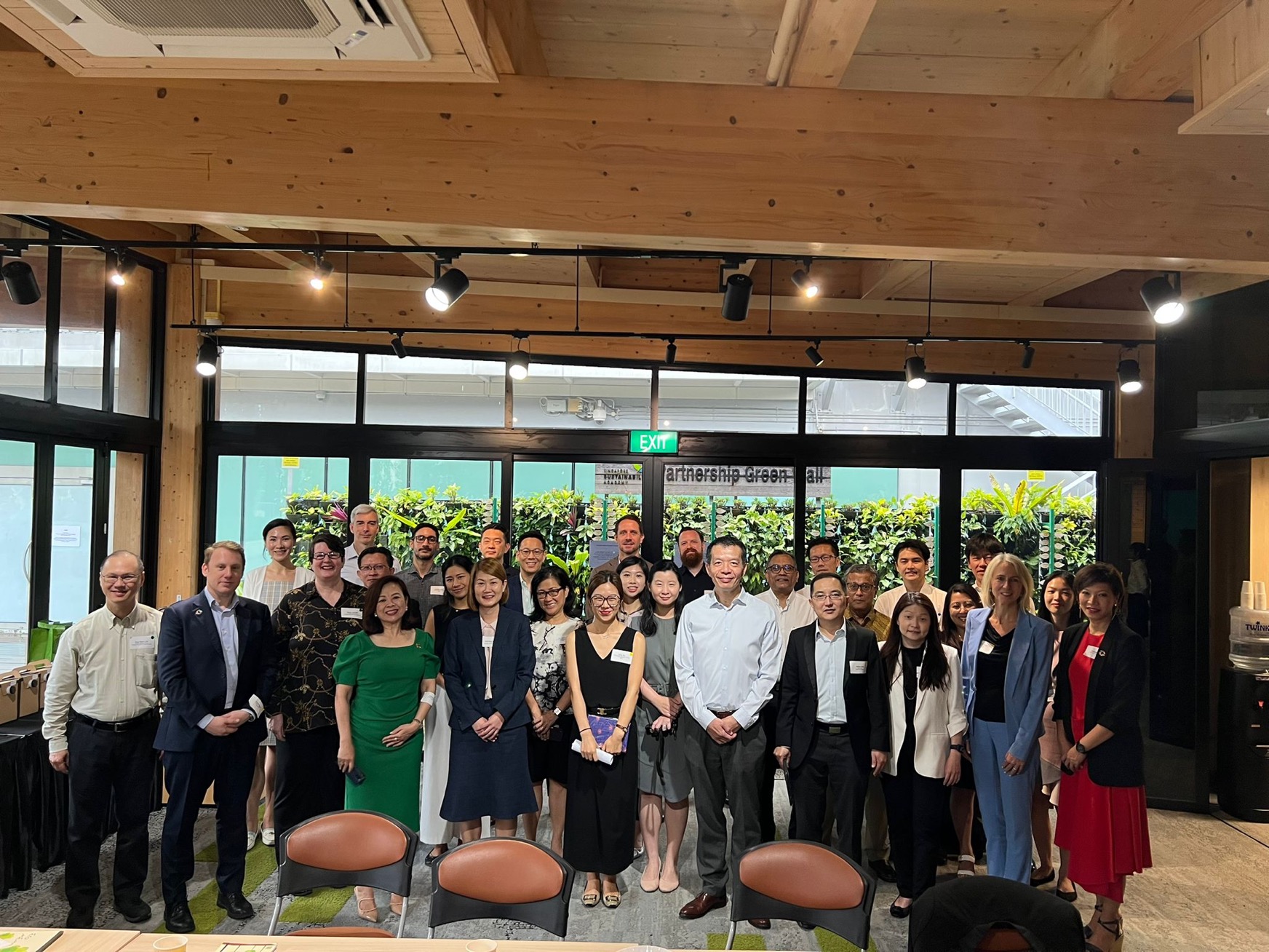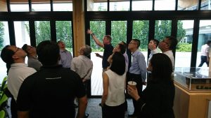 The delegates were particularly keen on learning about the application of Cross Laminated Timber and Glulam which were not only made from renewable sources but due to the prefabricated nature of the structural wood, enabled CDL to complete construction in under six months. Timber specialists Venturer shared their insights and process generously whilst Schneider Electric, who installed the real-time automation control and energy management system edified the group on the inner workings of the system.