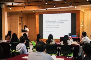 The NEA Corporate Environmental Champions Workshop, held at the Singapore Sustainability Academy on 27-28 November, aimed to equip representatives of corporate and non-government organisations with skills and knowledge to implement environmental initiatives within and beyond their organisations. Seeing increased interest from these sectors around sustainability, the programme was well-attended with over 30 participants from a wide variety of organisations like Khoo Teck Puat Hospital, Nature Society, Ricoh (Singapore) Pte Ltd, Ministry of Health, Interface Asia, LepakinSG and 15 others. The two-day workshop was conducted by Ms Farizan d’Avezac De Moran, Senior Partner of GreenA Consultants, and officials from NEA.