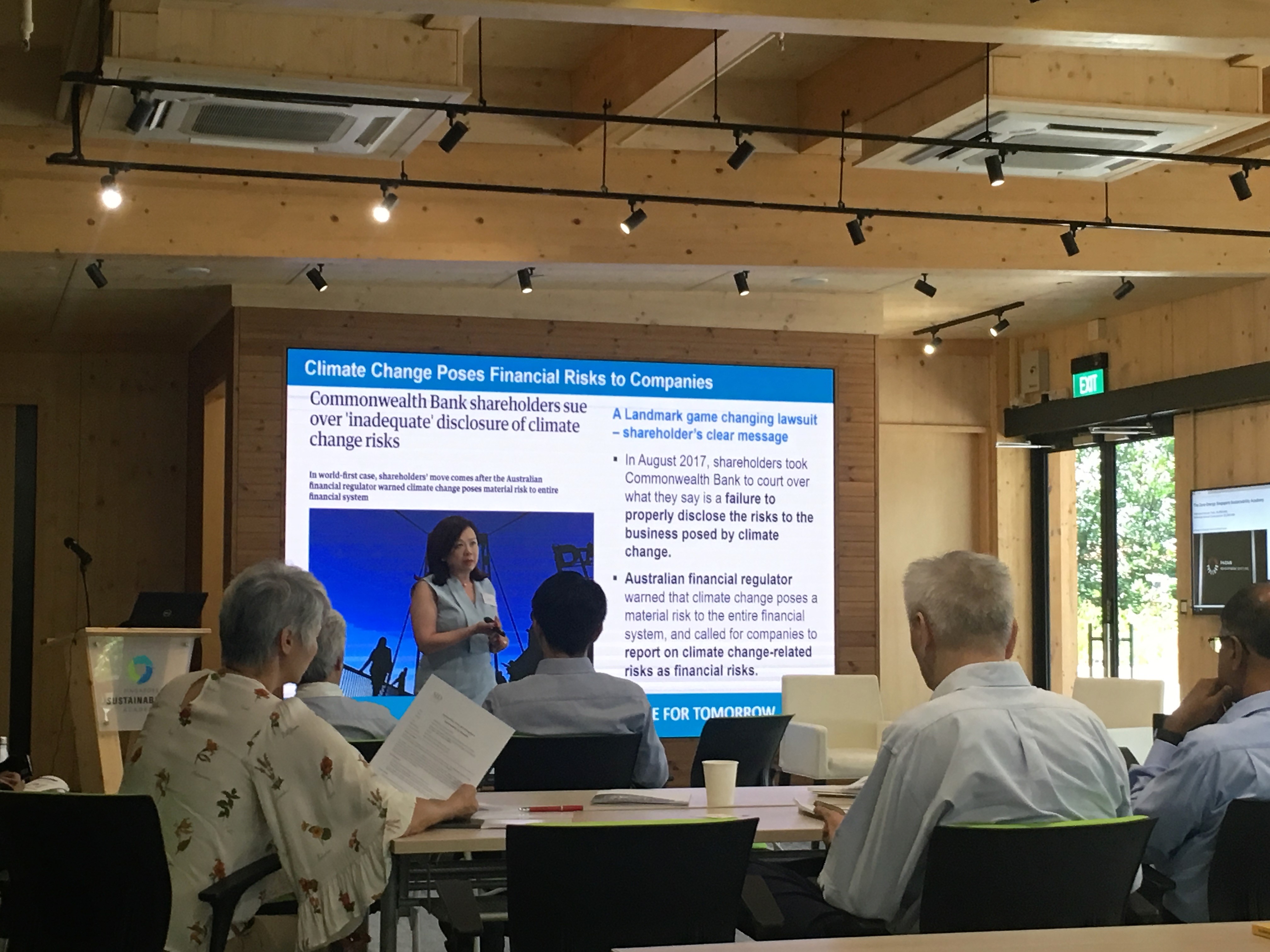 Singapore Exchange Limited (SGX) organized a briefing for 80 directors of listed Catalist companies to learn more about the basics of sustainability reporting, and how a first-time reporter should start. The briefing opened with a welcome by June Sim, Head of Listing Compliance at SGX. Esther An, Chief Sustainability Officer of City Developments Limited, also welcomed participants to the zero-energy Academy and spoke on its vision, mission, and making. Then, Yeo Lian Sim, SGX Special Adviser (Diversity), gave an overview of Sustainability Reporting and the SGX Guide to reporting. Following that, Christopher Chong, Lead ID of Singapore O&G and Chaiman, Emerging Towns & Cities, spoke on Implementing Sustainability Reporting from a Board Director’s Perspective. Finally, Wong Dan Chi, Director of Paia Consulting, gave participants useful pointers from a Sustainability Consultant, on how to begin reporting and the most important things to look out for.
