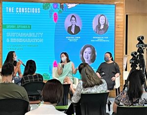 The event was accompanied by an exhibition by students from Raffles Design Institute, who showcased their own works from a project that tasked them to come up with a sustainable fashion line. The audience later voted on their favorite projects from a creative selection featuring clothing, jewelry, accessories and other products made by the students.