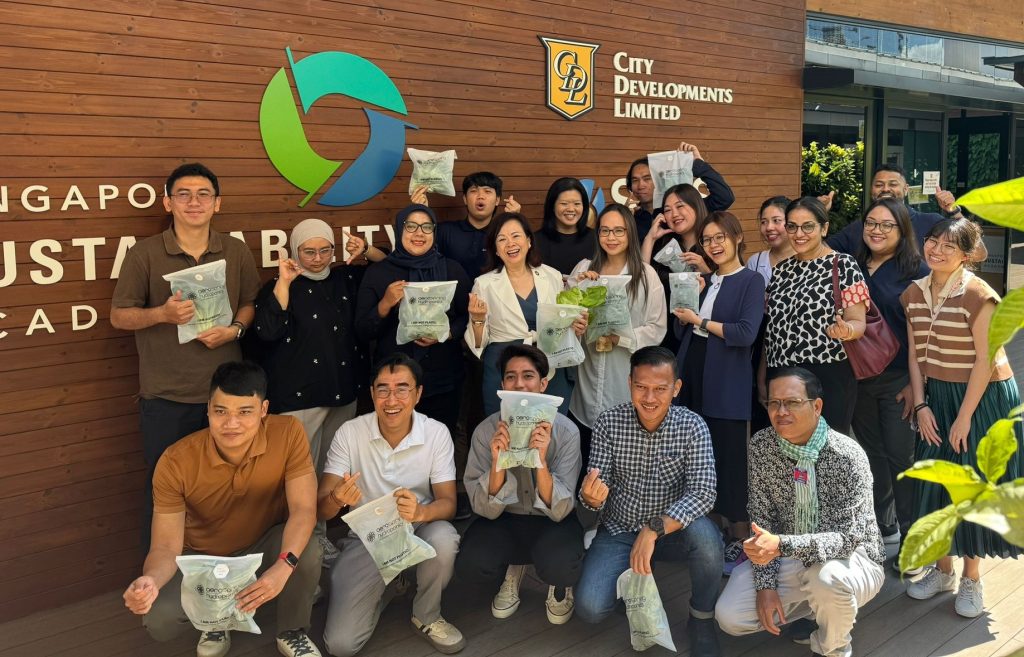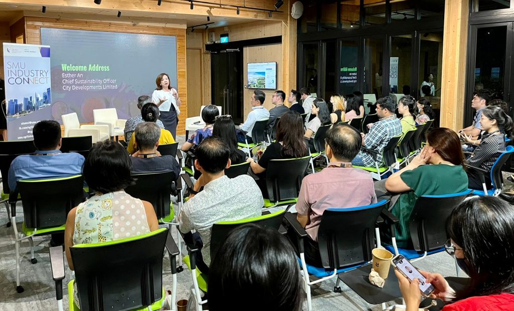 45 local and international students from the Singapore Management University (SMU) visited the Academy as part of a class on ‘Managing Sustainability’ on 20 October. The class, SMU’s first dedicated module on corporate sustainability, is co-designed and taught by CDL Chief Sustainability Officer, Esther An. The students hail from a range of countries, with diverse majors such as Accountancy, Business, Economics, Information Systems and others.