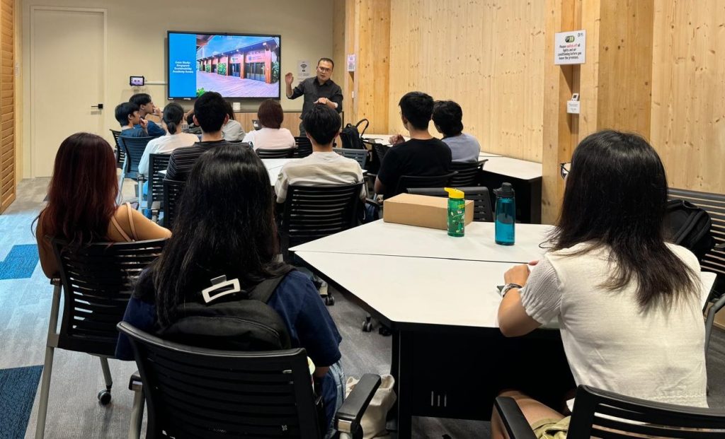 At the zero-energy Academy, Esther An, CDL Chief Sustainability Officer,, shared with participants about CDL’s sustainability journey and the vision and mission of the Academy. The students were also given a tour of the zero-energy Academy, which highlighted some of the key green features of the space such as its use of sustainable, Nature’s Barcode™ verified wood, solar panels, and real-time energy consumption tracker. The participants were enthused and asked many questions about the sustainable features of the building and how CDL fits into the bigger picture in terms of sustainability in Singapore.