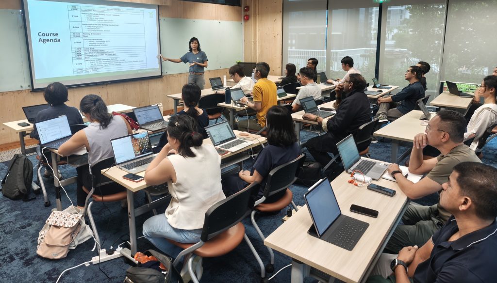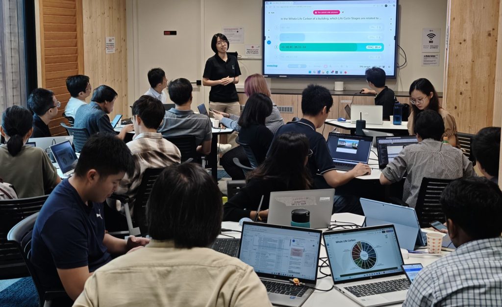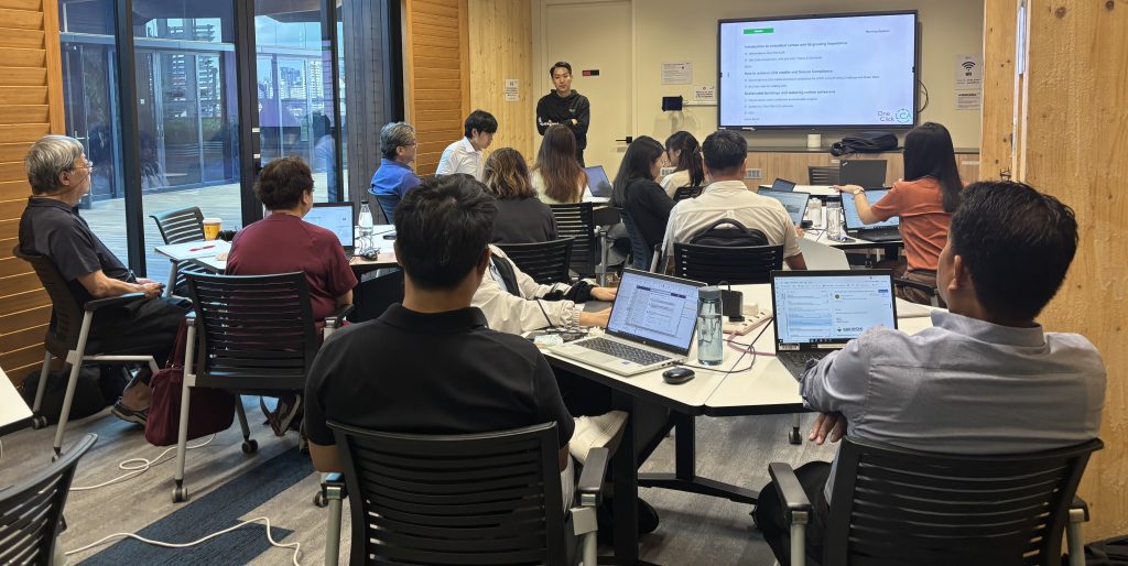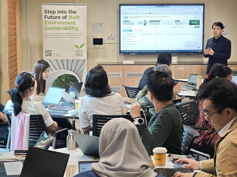 Organised by SGBC, the training equipped participants with hands-on experience using the Building Embodied Carbon Calculator (BECC) to assess carbon emissions in real-world building projects. Aligned with the Code for Environmental Sustainability of Buildings (Edition 4.0) and the Green Mark 2021 Whole Life Carbon badge, the course helped participants understand whole life carbon and develop practical skills to quantify and reduce embodied carbon in construction.