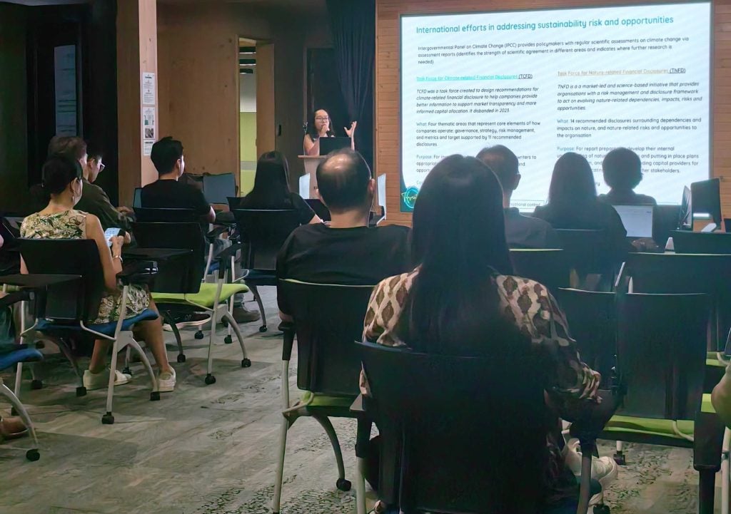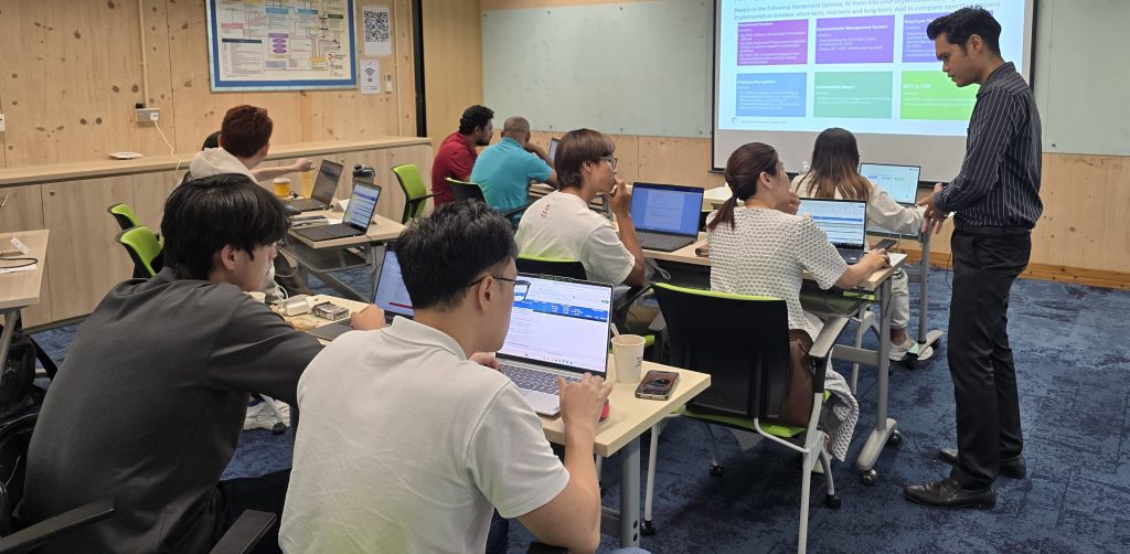 Carbon has emerged as a crucial global metric for addressing and conveying sustainability efforts. Decarbonising an organisation’s operations not only enhances its brand image among investors and customers but is also increasingly vital as goals transition towards achieving Net Zero Carbon. This makes it essential to meet the growing expectation for businesses to actively mitigate carbon emissions in the operations. The proficiency in comprehending and articulating organisation sustainability policies and decarbonisation initiatives are pivotal skills that position companies at the forefront of sustainable practices. Through this course, participants gained foundational skills and knowledge needed to compute and prepare carbon emissions data for sustainability reporting, and learnt about sustainability reporting frameworks (GRI and ISSB), as well as climate-related disclosures (IFRS).