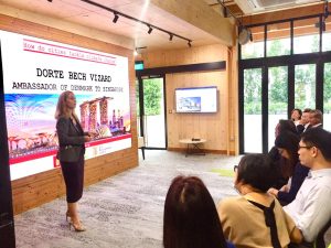 Titled ‘Cities & Citizens Confronting Climate Change’, the event featured presentations by distinguished political and industry leaders, moderated by Ms Jessica Cheam, Managing Editor of Eco-Business. The event opened with a welcome by the moderator, before Her Excellency Dorte Bech Vizard, Ambassador of Denmark to Singapore and Brunei, took the floor to welcome guests from both countries and kick off the dialogue with the thought-provoking message that climate change is the ‘black elephant’ in the room. This was followed by an address by the Guest of Honor, Mr Khoo Teng Chye, Executive Director of the Centre for Liveable Cities, Ministry for National Development, on “Towards a sustainable future”. Mr Khoo touched on how Denmark and Singapore are small in size, but can be hugely influential in stirring others to become more sustainable. Then, Mr Morten Kabell, Mayor of Technical & Environmental Affairs, City of Copenhagen, spoke on “How cities can and should act”. Mr Kabell emphasized the need for mutual learning and collaboration between Singapore and Copenhagen, giving examples of climate-friendly practices from both cities. Following that, Ms Esther An, Chief Sustainability Officer, City Developments Limited (CDL), shared on “How to grow a ‘green force’ in cities”, citing how CDL has engaged its key stakeholders on the need to be sustainable through education and empowerment. Finally, Mr Andreas Maaløe Jespersen, Associate Researcher at iNudgeyou, spoke about his experience in “Getting citizens to go green” through behavioral economics principles.